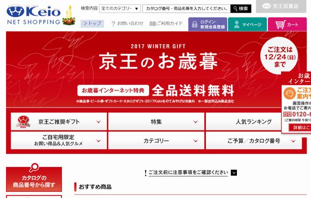 2017年の京王百貨店公式通販サイトのお歳暮コーナーでは、さまざまなギフト商品が扱われています。