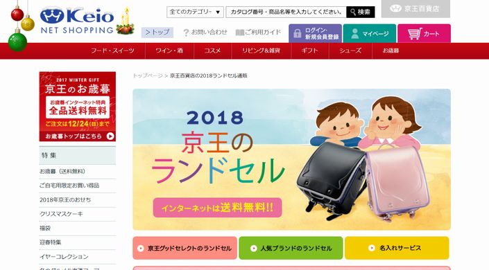 2018年新入学向けの京王百貨店のランドセル通販コーナーでは、さまざまな種類のアイテムが扱われています。