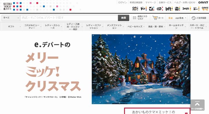 西武そごうの公式通販サイトでは、例年、クリスマス前に、クリスマスケーキや飾り付け用品ん、ギフト好適品などが揃えられたクリスマスコーナーが設置されます。