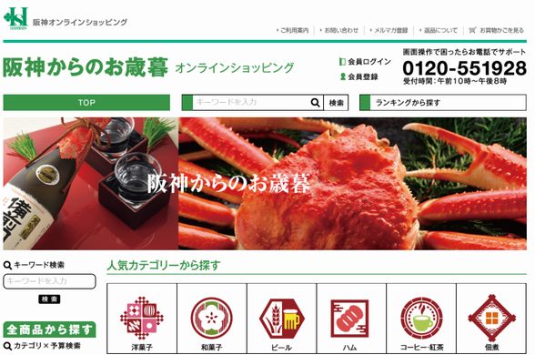 阪神百貨店のオンラインストアでは、例年、お歳暮コーナーが展開されています。