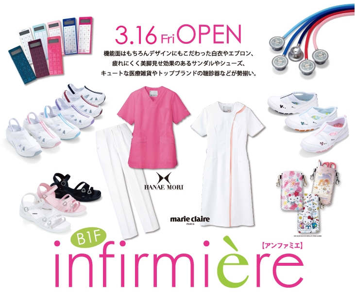2018年3月16日(金)に、池袋マルイに看護師通販「アンファミエ」の直営店舗がオープンしています。直営店としては6店舗目で、東京では銀座店に続いての二店舗目となっています。