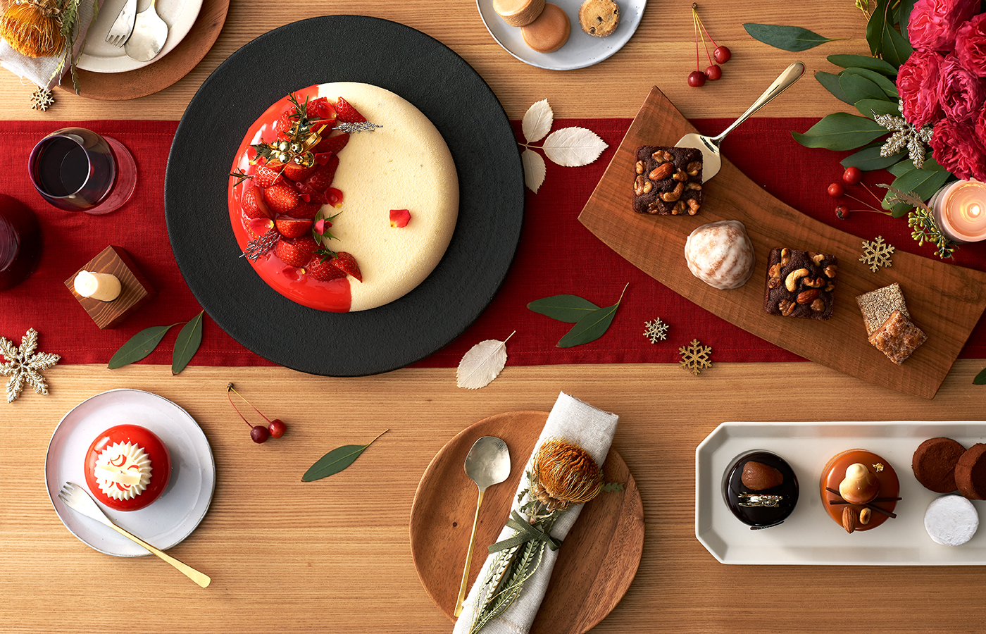 テーマは、「大切な人と、心あたたまる一日を」と設定されていて、雪景色の中の雪灯りがイメージされたホールケーキを始めとして、小物ケーキ、焼き菓子なども用意されているそう。