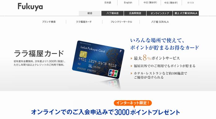 各デパートの「クレジットカード」「ポイントカード」「友の会」「株主優待」ご紹介 福屋 【福屋】でお得な「クレジットカード」「ポイントカード」「友の会」「株主優待」ご案内 こちらでは、広島を中心に山陽に展開するデパート、福屋で便利な「クレジットカード」「ポイントカード」「友の会」「株主優待」をご案内しています。 クレジットカード...