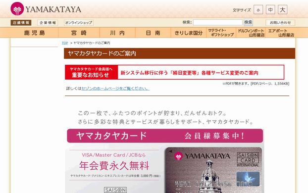 各デパートの「クレジットカード」「ポイントカード」「友の会」「株主優待」ご紹介 山形屋 山形屋でお得な「クレジットカード」「ポイントカード」「友の会」「株主優待」ご案内 こちらでは、南九州に展開するデパート、山形屋で便利な「クレジットカード」「ポイントカード」「友の会」「株主優待」をご案内しています。 クレジットカード「ヤマカ...