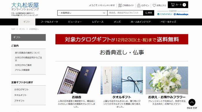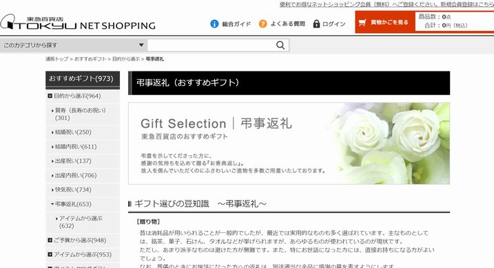 こちらでは、デパート通販サイトでの弔事返礼(お香典返し)の手配についてご紹介しています。